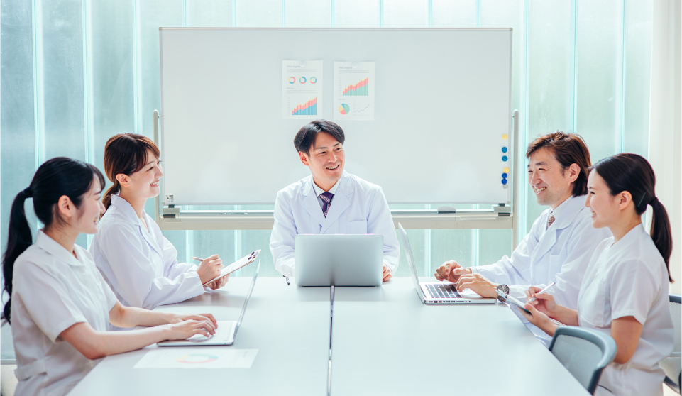 仮)企業理念(MVV)のもとに患者さんに寄り添いながら、職員が働きやすい環境づくりを努力しています。 個々の成長をサポートし合いながら、共に輝ける職場を目指しましょう。